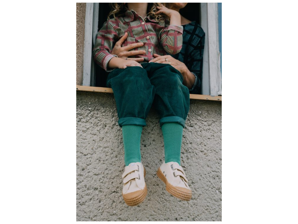 Rebrované pančuchy v osviežujúcej farbe mentolky. Vyrobené z česanej bavlny (85%) s jemným polyamidom (15%), vďaka ktorému držia svoj tvar a neprederavia sa. Je vpletený medzi dve bavlnky, aby nedochádzalo ku kontaktu s detskou pokožkou. Preto sú vhodné aj pre ekzematickú pokožku.