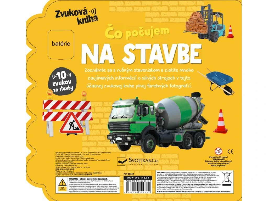 🚧 Objav ruch veľkej stavby aj bez toho, aby si tam musel ísť! 🏗️ Vstúpte do sveta mohutných strojov, dômyselných nástrojov a rušného staveniska s touto zvukovou knižkou, ktorá deti nielen zaujme, ale aj zapojí všetky ich zmysly. Na každej stránke nájdu farebné fotografie skutočných stavebných vozidiel a pri tom si budú môcť vypočuť až 10 autentických zvukov — od hučiacich motorov až po búranie a trúbenie veľkých strojov.