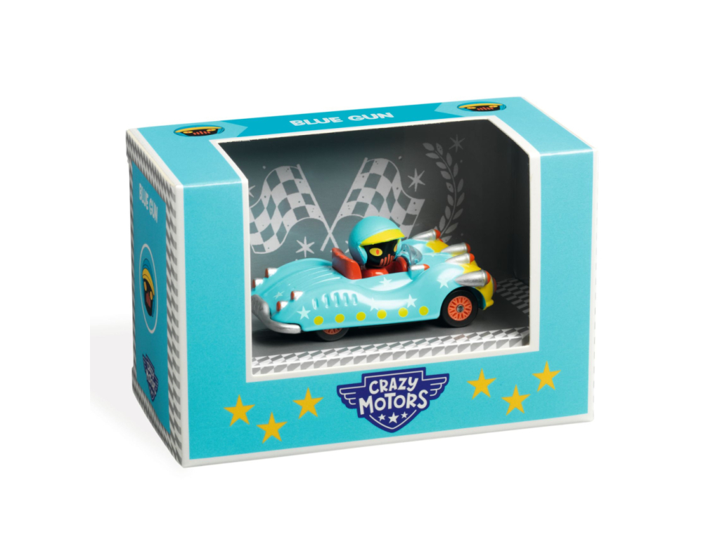 Pretekárske autíčko z originálnej kolekcie Crazy Motors od Djeco s figúrkou. Keď Modrá Puška vystrelí, fičí o dušu. Ďaľší krásny kúsok do zbierky Crazy Motors.