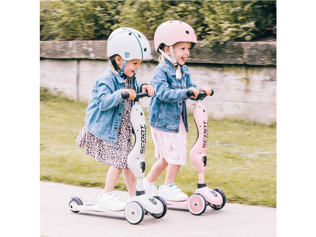 Veľmi ľahká (váži len 240 g!), inovatívna a štýlová detská ochranná prilba rakúskej značky Scoot and Ride rastie s vaším dieťaťom.