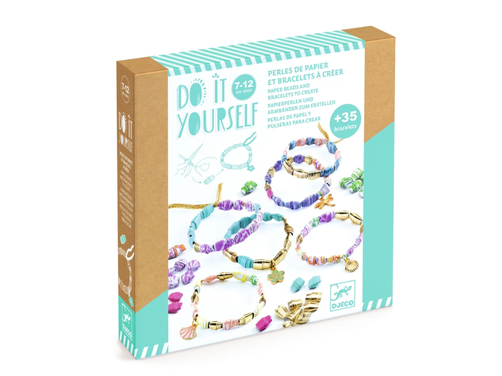 DIY – Štýlové a zlaté náramky je originálna kreatívna sada značky Djeco, ktorá umožní deťom vytvoriť si vlastné farebné a zlaté papierové náramky pomocou korálok z papiera. Súprava obsahuje všetko potrebné – farebné papiere, šnúrky, prívesky aj návod – aby si deti mohli pripraviť množstvo krásnych doplnkov podľa svojej fantázie.