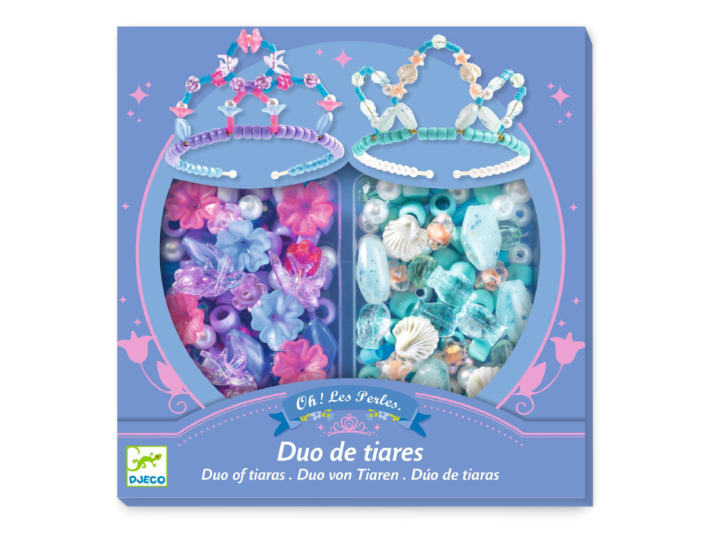 - Komplexná sada s 240 rôznymi akrylovými korálkami, 2 zlatými čelenkami a flexibilnou kovovou niťou na vytvorenie 2 nádherných diadémov.