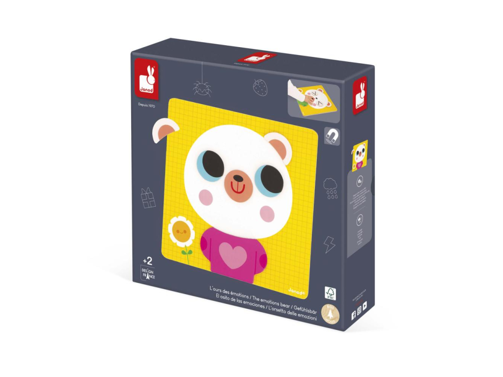 Ako sa cítiš, Teddy? S touto vzdelávacou hrou sa deti vo veku 2 a viac rokov učia pomenovať a prejaviť svoje emócie. Aby im pomohol rozvíjať ich jazyk a opísať ich niekedy zložité a silné pocity, malé deti sprevádza malý medvedík: Teddy. Táto magnetická hra sa skladá z 1 veľkej dosky, 30 magnetov a 7 kariet modelov. Predstavujú rôzne emócie, od radosti a hnevu až po lásku a strach. Ako rodina predstavte každú emóciu, ktorú malý medvedík cíti, umiestnením magnetov! Ako všetky deti, aj Teddy pociťuje množstvo emócií vo všetkých druhoch situácií, ktoré môžu byť niekedy trochu ohromujúce. Môžete ich identifikovať podľa toho, ako sa menia jeho oči, výraz na papuli alebo dokonca oblečenie, ktoré nosí! Manipuláciou s magnetmi a popisovaním scén si deti rozvíjajú jemnú motoriku a slovnú zásobu, ako aj zmysel pre pozorovanie. Naučiť sa identifikovať a vysvetliť svoje pocity nebolo nikdy také zábavné! Toto je magnetická vzdelávacia hra, ktorá pomôže vášmu drobcovi prejaviť sa v každodennom živote a rozvíjať empatiu. Vyrobené z dreva z udržateľne obhospodarovaných lesov s certifikátom FSC™.