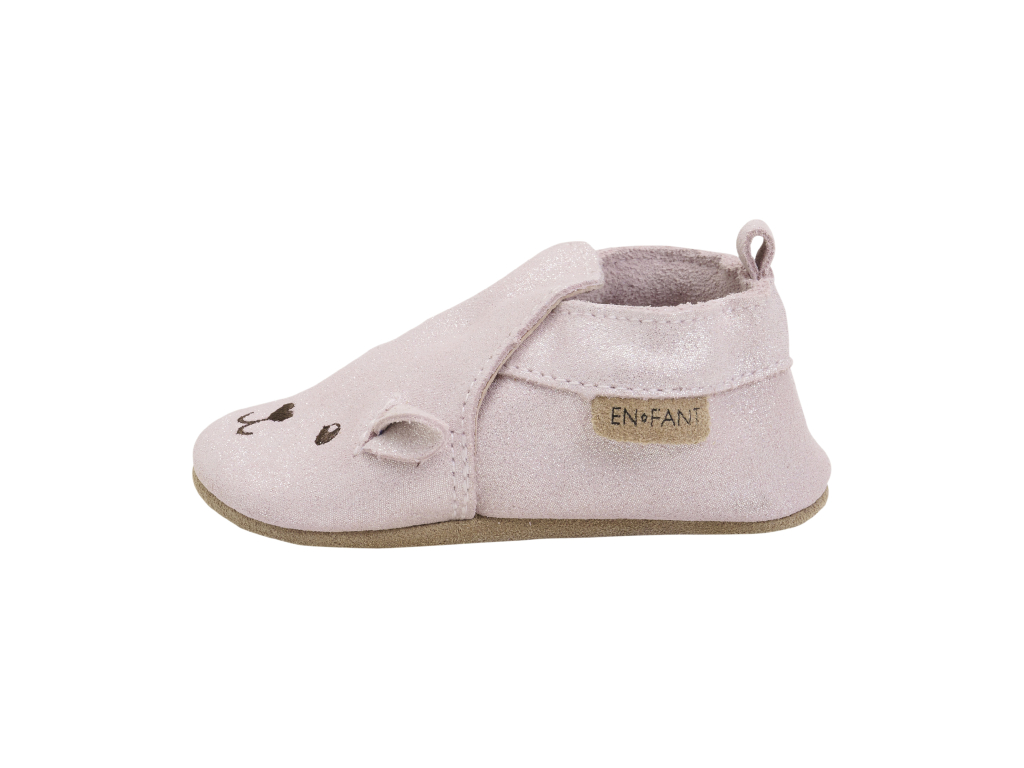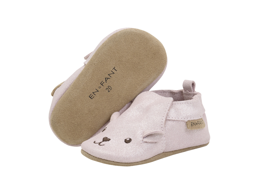 Enfant capačky z brúsenej kože v dizajne ružového zvieratka s uškami sú mäkučké, priedušné, chránia nôžky a podporujú prirodzenú chôdzu. Vďaka elastickej gumičke na päte sa ľahko obúvajú a dobre držia na nohe. Ideálna obuv pre najmenších.