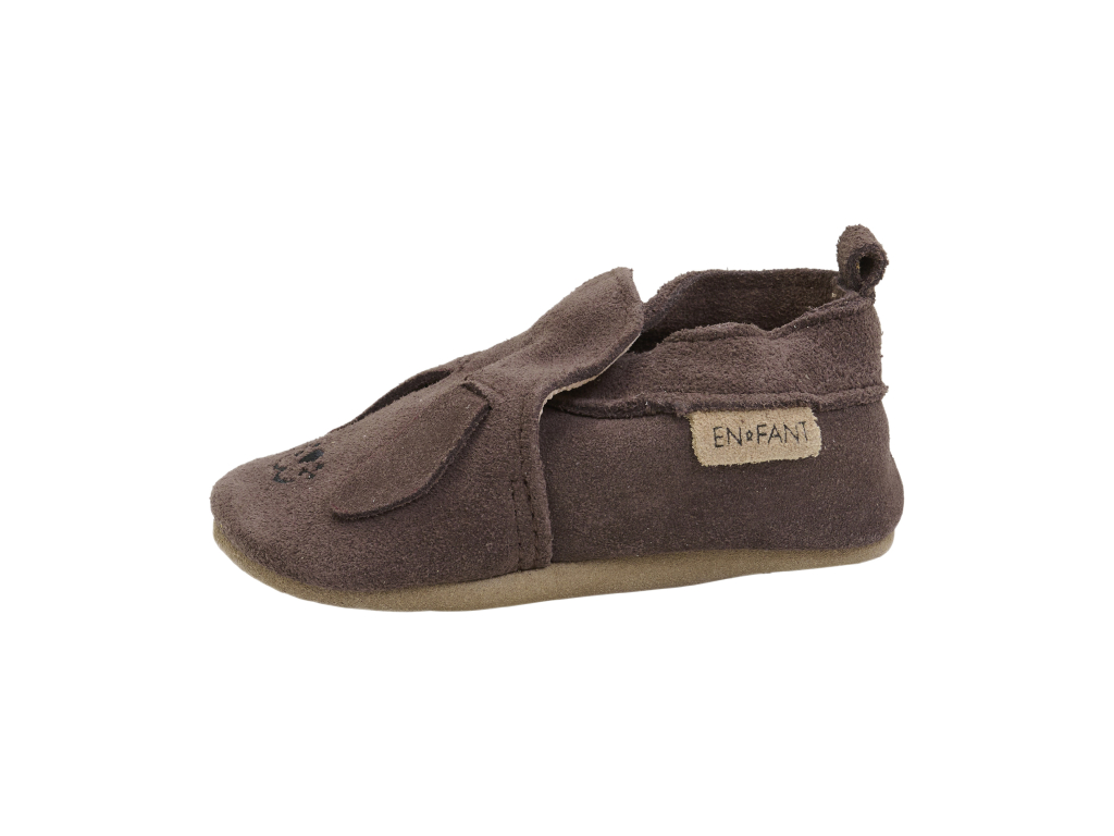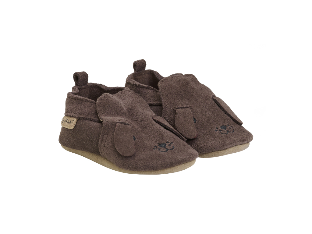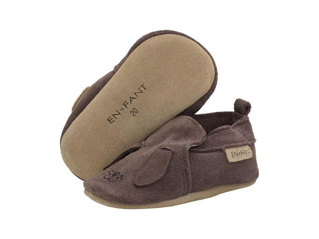 Tieto nádherné Enfant capačky z brúsenej kože v podobe hnedého psíka sú dokonalým doplnkom pre malé detské nožičky. Celokožené prevedenie zabezpečuje maximálny komfort, priedušnosť a mäkkosť, čo je ideálne pre prvé kroky aj pohodlné nosenie doma. Roztomilý dizajn s uškami dodáva capačkám hravý vzhľad, zatiaľ čo elastická gumička na päte zabezpečuje jednoduché obúvanie a pevné držanie na nôžke. Vhodné pre bábätká a malé deti, ktoré sa učia stáť a chodiť.