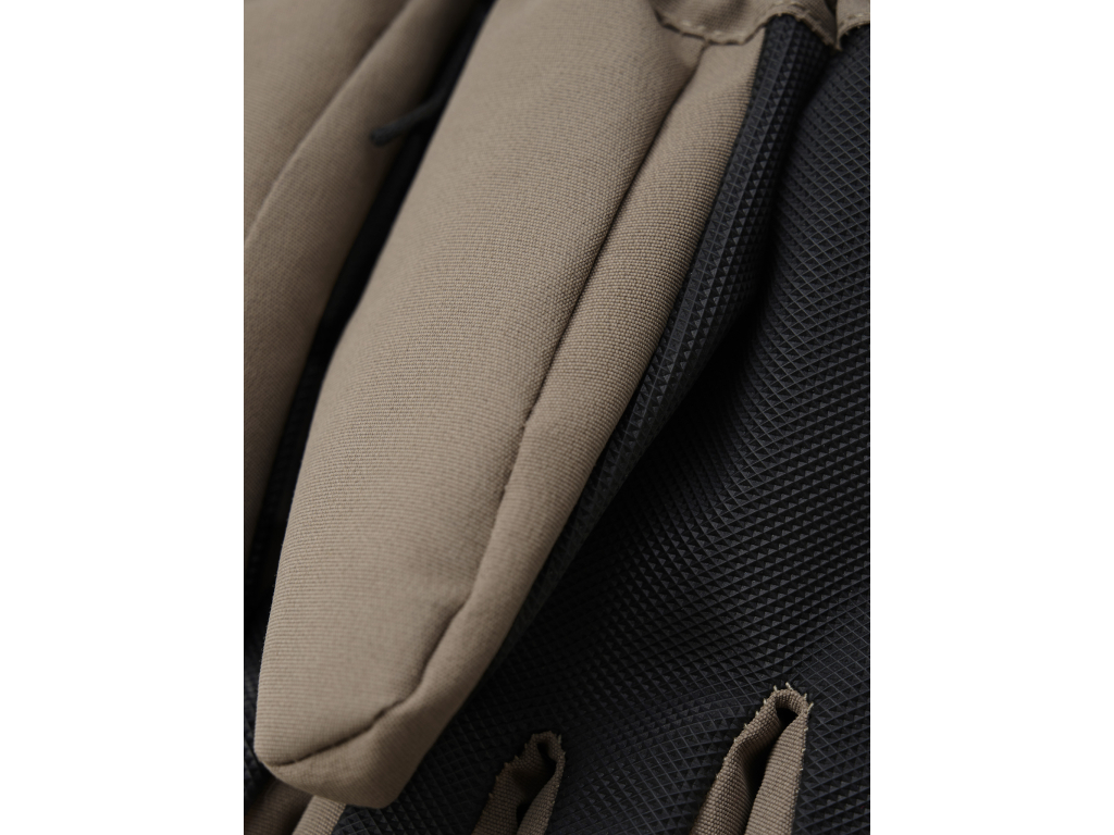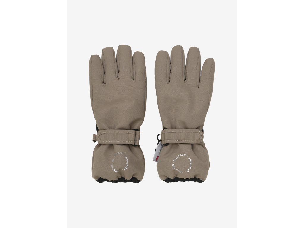 Béžovo-hnedé prstové rukavice od EN FANT. Materiál je priedušný, vetruvzdorný a vodeodolný, takže vaše dieťa môže zostať vonku v daždi, snehu a vetre bez toho, aby prechladlo a premoklo. Testovaný tlak vodného stĺpca 20 000 mm. a priedušnosť 5000 g. Rukavice majú na prednej strane reflexné prvky. Vpredu majú suchý zips, takže sa ľahko obliekajú. Rukavice sú podšité jemným fleecom. Vo vnútri je menovka. Rukavice majú praktické plastové klipy, takže sa dajú skladovať spolu. Sú vyrobené z recyklovaného materiálu. Náter BIONIC-FINISH® ECO, čo je ekologická hydroizolácia, ktorá je biologicky odbúrateľná.