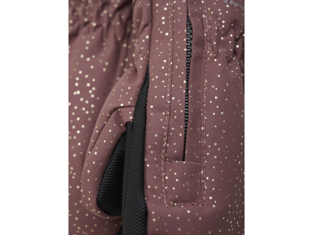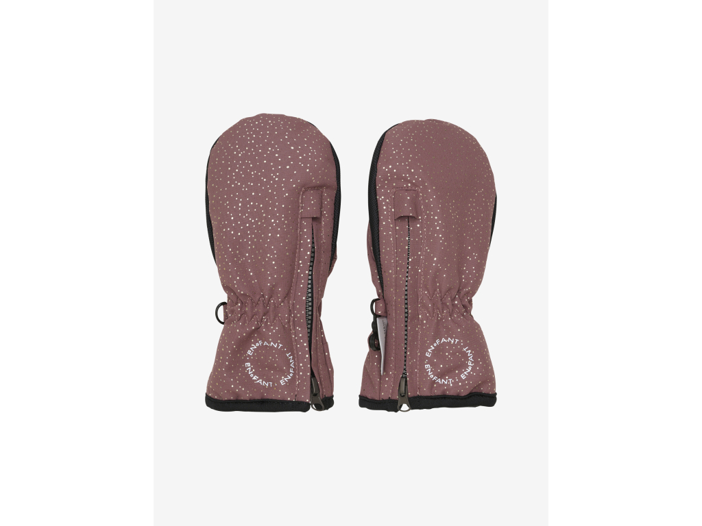 Tmavostaroružové palčiaky so zlatými bodkami od Enfant. Materiál je priedušný, vetruvzdorný a vodeodolný, takže vaše dieťa môže zostať vonku v daždi, snehu a vetre bez toho, aby prechladlo a premoklo. Testovaný tlak vodného stĺpca 20 000 mm. Rukavice majú na prednej strane reflexné prvky. Vpredu majú zips, takže sa ľahko obliekajú. Rukavice sú podšité jemným fleecom. Vo vnútri je menovka. Rukavice majú praktické plastové klipy, takže sa dajú skladovať spolu. Sú vyrobené z recyklovaného materiálu. Náter BIONIC-FINISH® ECO, čo je ekologická hydroizolácia, ktorá je biologicky odbúrateľná.