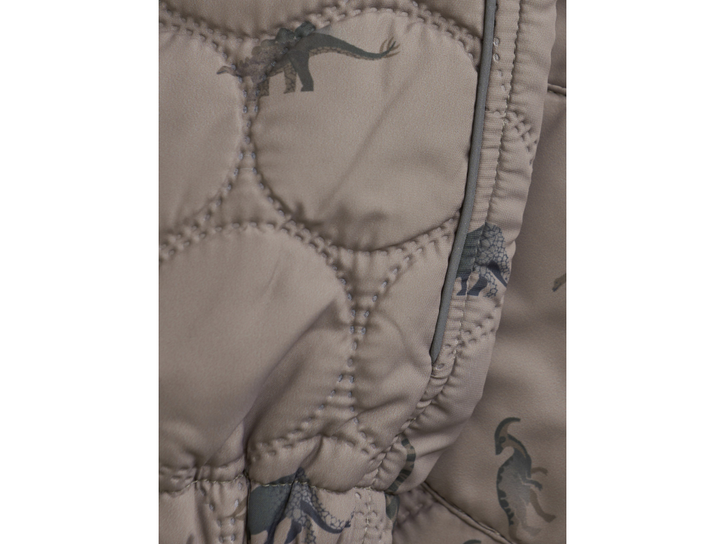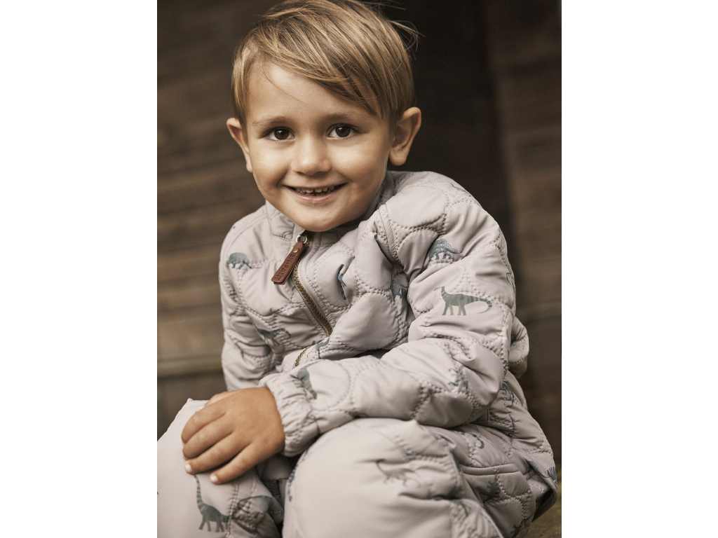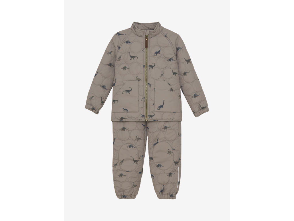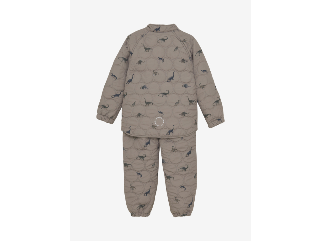 Štýlová a funkčná súprava v jemnom béžovohnedom odtieni Fungi zaujme hravou potlačou dinosaurov. Ľahký, mäkký a hrejivý materiál poskytuje ideálnu vrstvu do chladnejších dní – na výlety, na ihrisko či do škôlky. Termo oblečenie je vyrobené z recyklovaného materiálu, set sa skladá zo zateplenej bundy a termo nohavíc na gumičku.