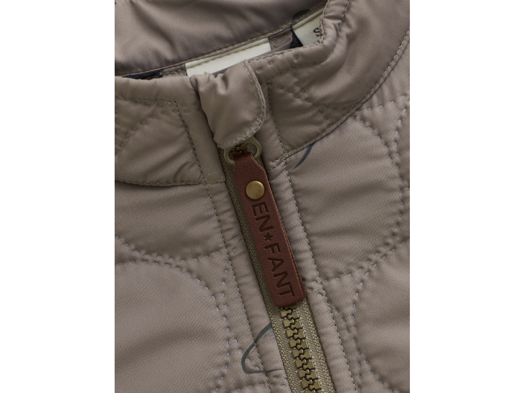 Termo súprava ako povinná výbava do prechodného počasia v béžovohnedej farbe s celoplošnou potlačou dinosaurov. Nakombinujte si s En*Fant gumákmi a funkčnosť a originalita je zaručená. Štýlový termoset dánskej kvalitnej značky En*Fant je naozaj dobrou voľbou napríklad do škôlky, na ihrisko alebo aj na prechádzku. Termo oblečenie je vyrobené z recyklovaného materiálu, set sa skladá zo zateplenej bundy a termo nohavíc na gumičku.