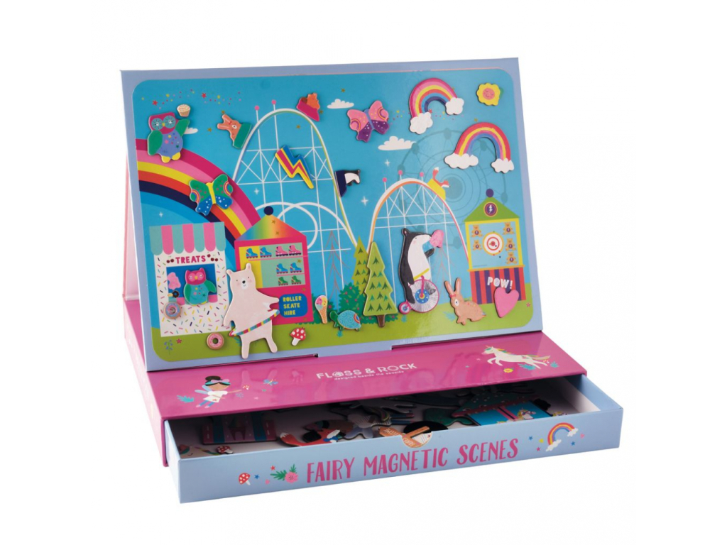 Magnetická hra obsahuje 2 herné scénky a viac ako 50 magnetických dielikov, ktoré sa dajú striedať a sú zárukou zábavy doma alebo na cestách! Podporuje nápaditú hru.