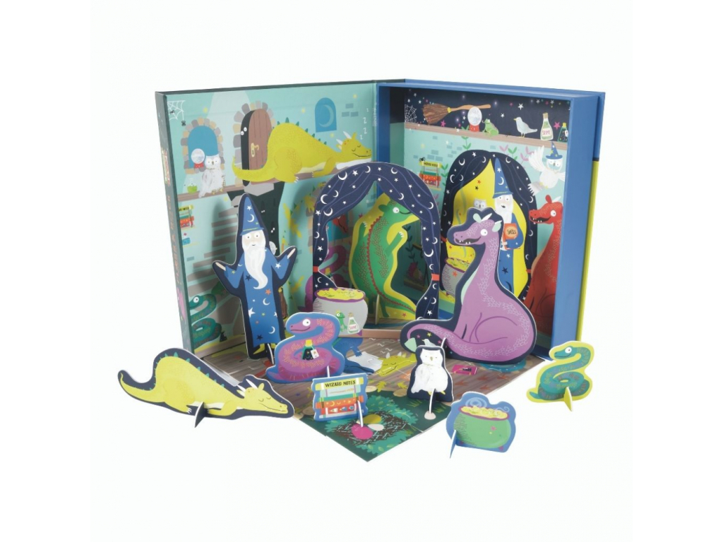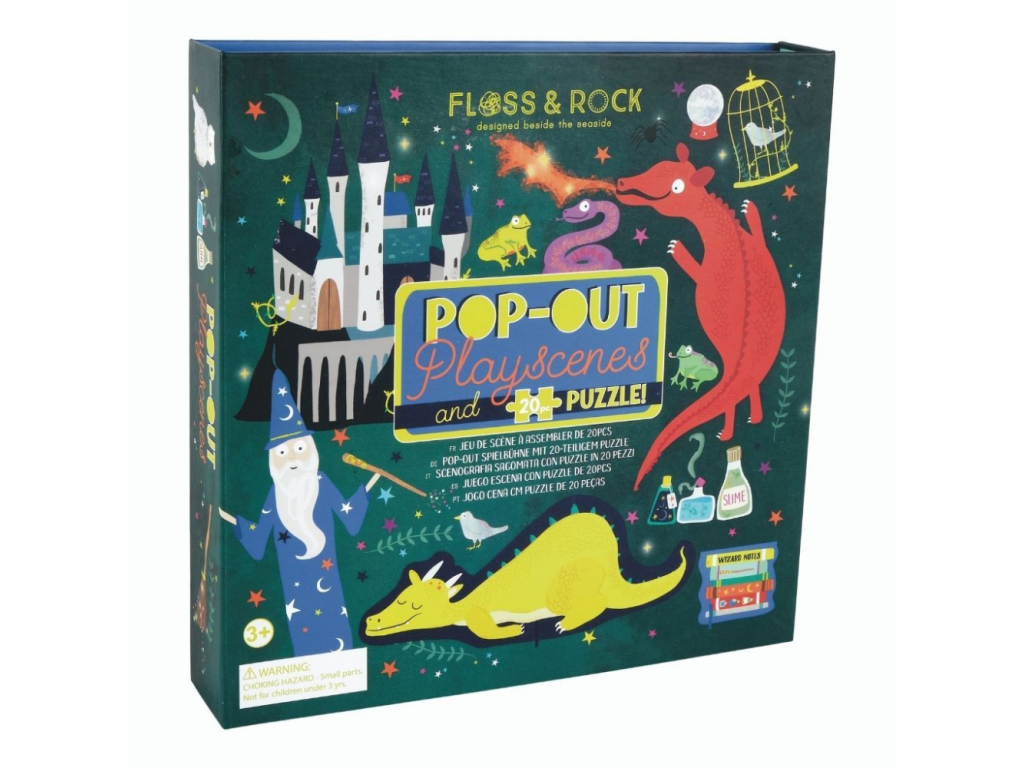Otvor Floss&Rock Playbox Čarodejník a vstúp do sveta kúziel! Poskladaj 20-dielne puzzle, postav si scénu a nechaj 12 kúzelných postavičiek ožiť v tvojich vlastných príbehoch. Hodiny zábavy a fantázie sú zaručené!