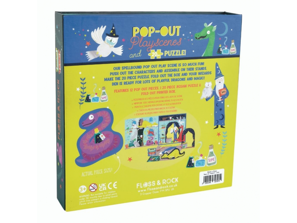 S Floss&Rock Playboxom Čarodejník sa malí kúzelníci zabavia hodiny! Stačí otvoriť box, poskladať farebné puzzle a hra môže začať. Playbox obsahuje 12 rôznych postavičiek a scéna obsahuje 20 kusov puzzle, ktoré vytvárajú kúzelný svet plný dobrodružstiev. Tento set podporuje fantáziu, tvorivosť a jemnú motoriku a umožňuje deťom vytvárať vlastné magické príbehy doma alebo na cestách.