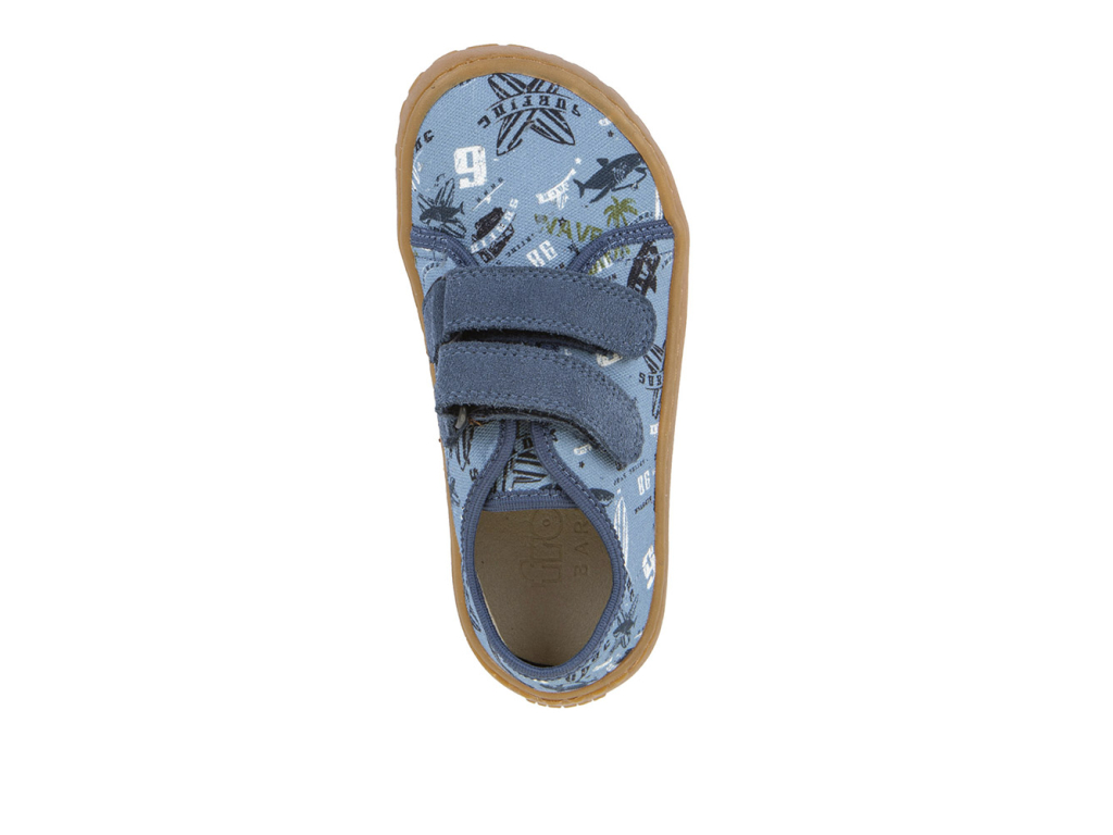 Barefoot plátené topánky Froddo Canvas modré so žralokmi prinášajú kombináciu ľahkosti, pohodlia a zdravého dizajnu pre deti, ktoré milujú voľnosť pohybu. Tieto barefoot tenisky sú vytvorené tak, aby podporovali prirodzený vývoj detskej nohy bez obmedzení — ideálne na každodenné nosenie, do školy, na hry aj prechádzky.