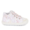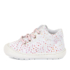 Obľúbený model Ollie v klasickej bielej farbe s rozkošnými ružovými bodkami a na klasické šnurovanie. Topánočky majú ohybnú podrážku a mierne spevnenú pätu.