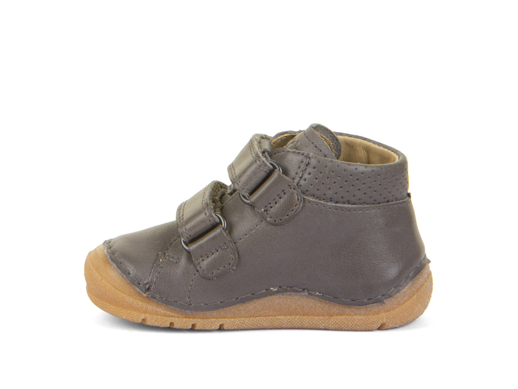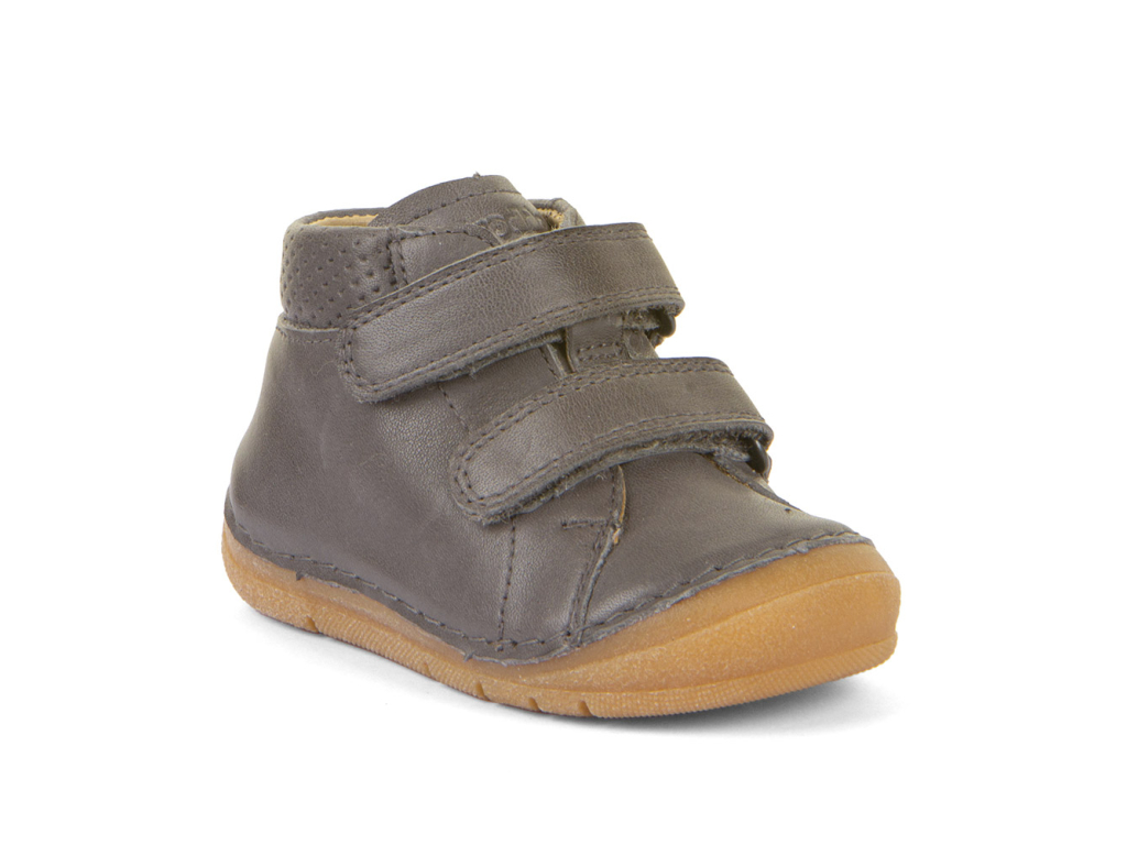 Celoročné kožené topánky FRODDO PAIX v sivej farbe sú vyrobené z prírodnej anilínovej kože, ktorá zaručuje maximálny komfort. Anilínová koža patrí medzi najkvalitnejšie druhy kože a vďaka nej sú topánky veľmi príjemné na dotyk, mäkké a vysoko odolné. Topánočky sú ideálne na prvé krôčky.