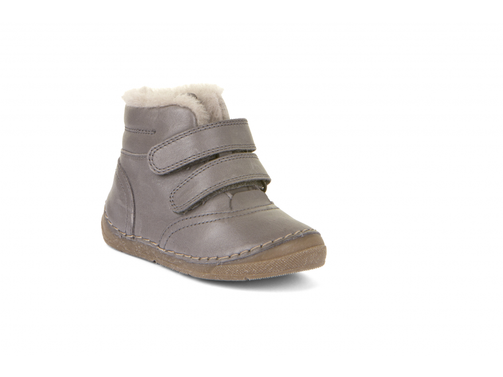 Kožené detské sivé topánky na zimu s podšívkou z ovčej kožušiny – extra ľahké, ohybné a pohodlné. Tenká a ohybná barefoot podrážka z prírodnej gumy umožňuje deťom vnímať nerovnosti terénu a reagovať na ne. Takto si prirodzene posilňujú svaly chodidla. Mäkká poddajná koža sa postará o pohodlie pri nosení a priedušnosť obuvi. Teplá podšívka z jemnej kožušiny spoľahlivo ochráni pred chladom. Zapínanie na suchý zips umožňuje jednoduché prezúvanie a prispôsobenie šírky obuvi.