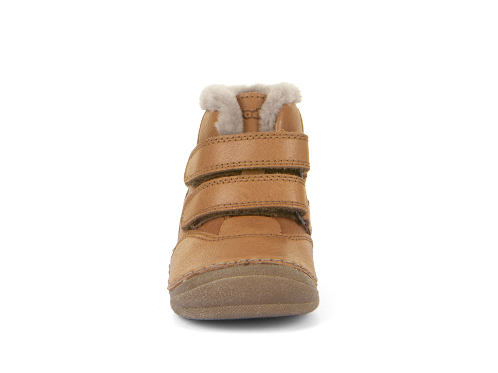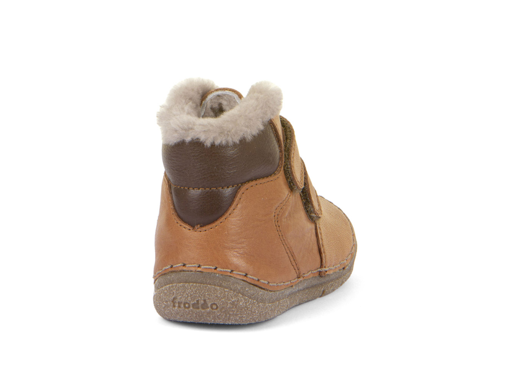 Detské zimné vyššie členkové topánky na dva suché zipsy. Topánočky sú zateplené pravou jahňacou kožušinkou, takže nôžka ostáva v teple. Sú mäkučké, vhodné na širšiu nôžku aj vyšší nárt. Ohybná mäkučká podrážka je ako u všetkých Froddo zimných topánočiek samozrejmosťou.