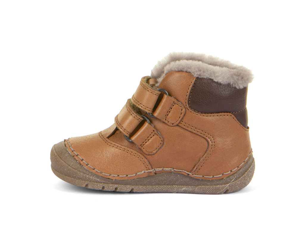 Kožené detské hnedé topánky na zimu s podšívkou z ovčej kožušiny – extra ľahké, ohybné a pohodlné. Tenká a ohybná barefoot podrážka z prírodnej gumy umožňuje deťom vnímať nerovnosti terénu a reagovať na ne. Takto si prirodzene posilňujú svaly chodidla. Mäkká poddajná koža sa postará o pohodlie pri nosení a priedušnosť obuvi. Teplá podšívka z jemnej kožušiny spoľahlivo ochráni pred chladom. Zapínanie na 2 suché zipsy umožňuje jednoduché prezúvanie a prispôsobenie šírky obuvi.