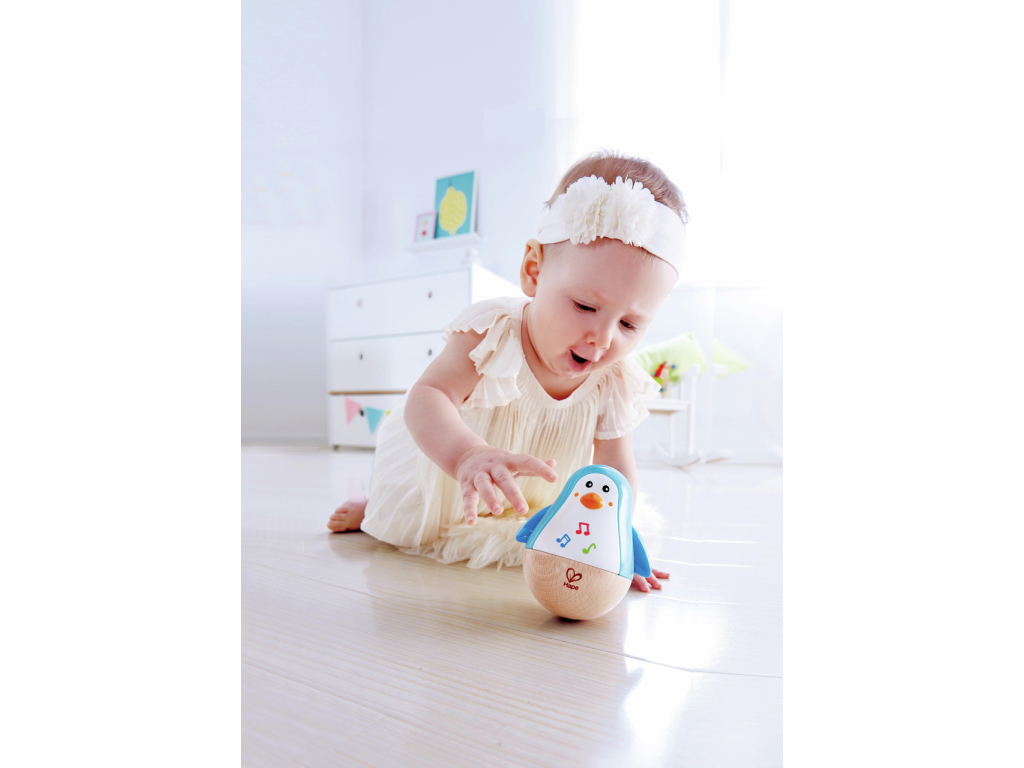 S týmto rozkošným tučniakom môžu deti zažiť kopec zábavy! Hračka vydáva zvuky na základe toho, ako sa nakláňa a hýbe sa. Vyrobené z kvalitného a odolného dreveného materiálu. Figúrka je krásne maľovaná, takže si ju zamiluje každé dieťa. Vhodné na rozvoj jemnej motoriky a mechanických zručností.