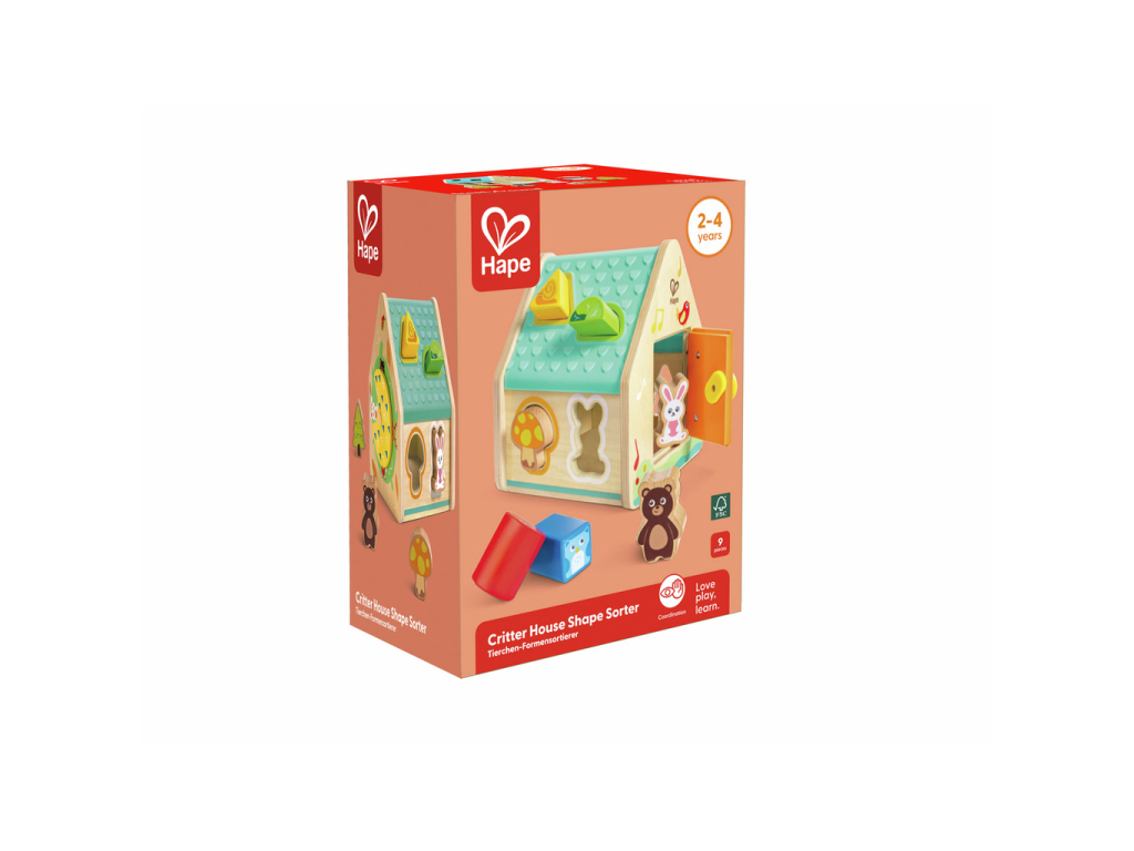 Balenie obsahuje jeden domček, štyri geometrické tvary a štyri dieliky v tvare zvieratiek – ideálne na rozvoj fantázie a rôznorodú hru.