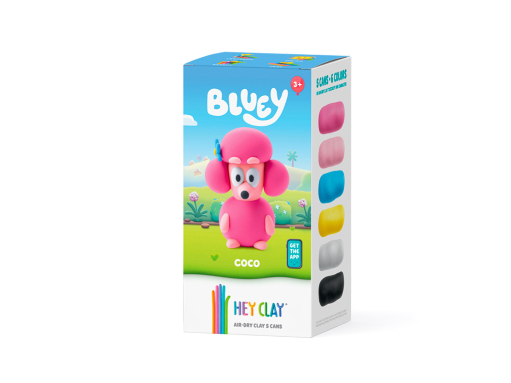 Ponorte sa do sveta fantázie s Bluey! Vďaka kreatívnej sade Hey Clay: Coco si deti môžu vlastnými rukami vytvoriť svoju obľúbené postavičku z obľúbeného rozprávkového sveta.