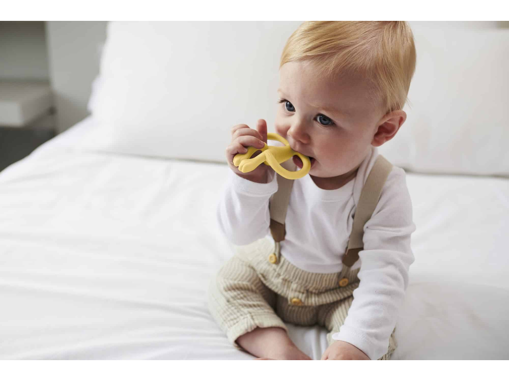 Inovatívna, kreatívna a farebná opička je vytvorená tak, aby pomohla Vášmu dieťatku pri prerezávaní zúbkov a uľavila od bolesti. S týmto úžasným hryzátkom a zubnou kefkou v jednom dokonale pomasírujete boľavé ďasienka, a zároveň sa postaráte o prvé zúbky pomocou aplikátora na zadnej strane hlavičky opice.