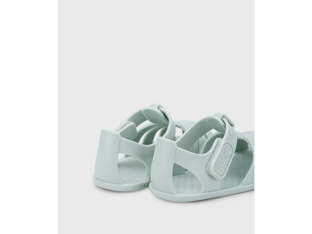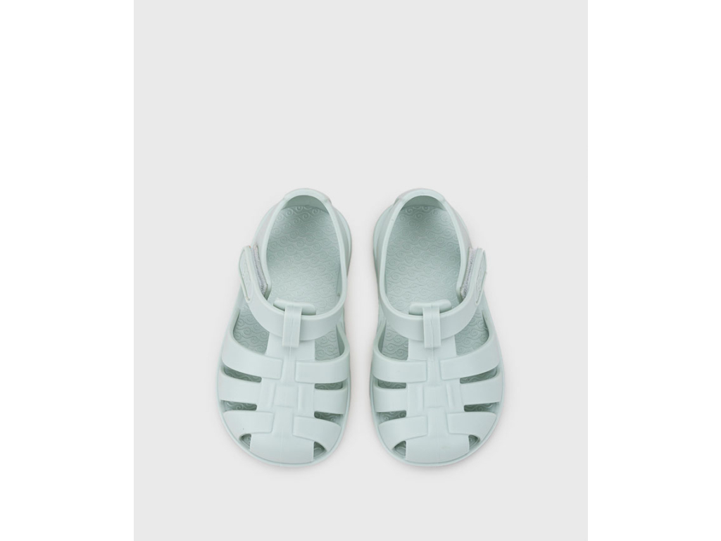 Detské gumené sandálky Igor Nemo Solid v sviežej mintovej farbe sú ľahké, ohybné, s barefoot strihom, ako stvorené na pláž, k bazénu či na hranie v škôlke, či na pieskovisku. Sú mäkké a vyrobené z rýchloschnúceho materiálu, ktorý odolá vode aj piesku. Vďaka protišmykovej podrážke a nastaviteľnému zapínaniu držia pevne na nožičke a zaručujú bezpečný pohyb aj na mokrom povrchu.