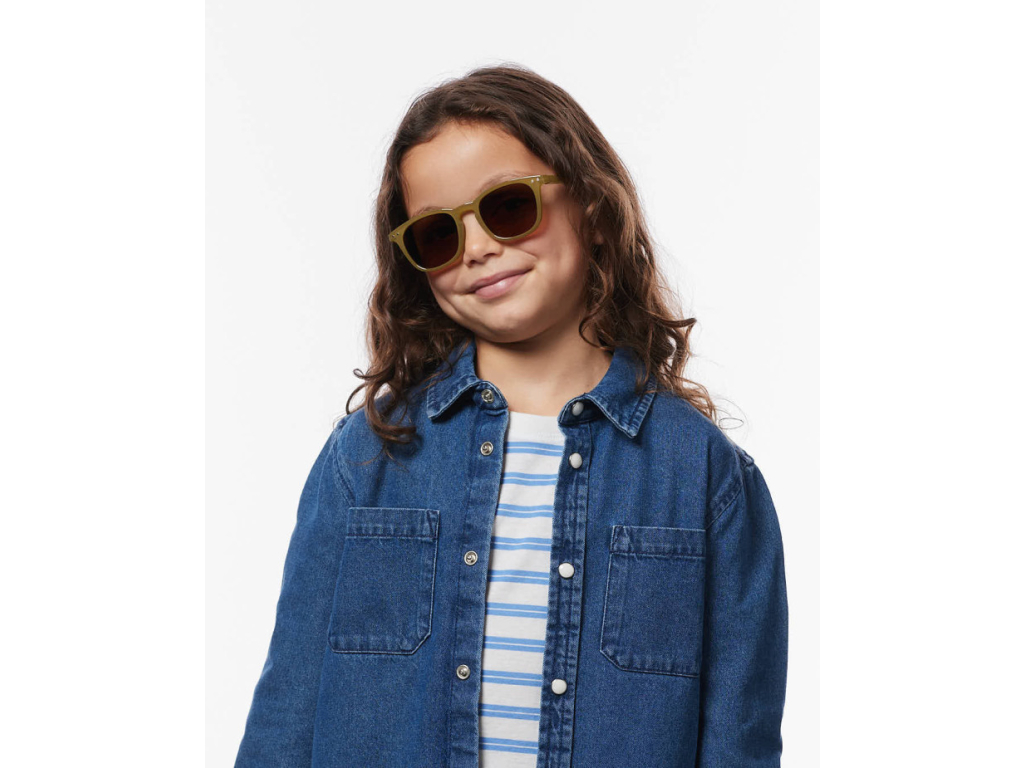 Okuliare majú univerzálny unisex dizajn a jemný olivový odtieň, ktorý pôsobí prirodzene a ľahko sa kombinuje s akýmkoľvek outfitom. Vďaka odolnej konštrukcii sú ideálne pre aktívne deti.