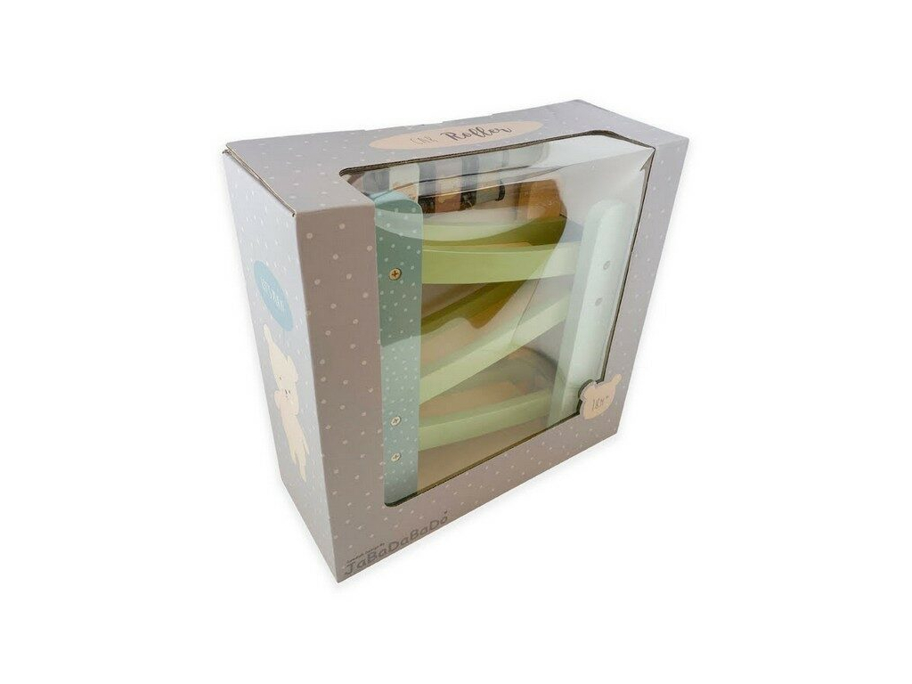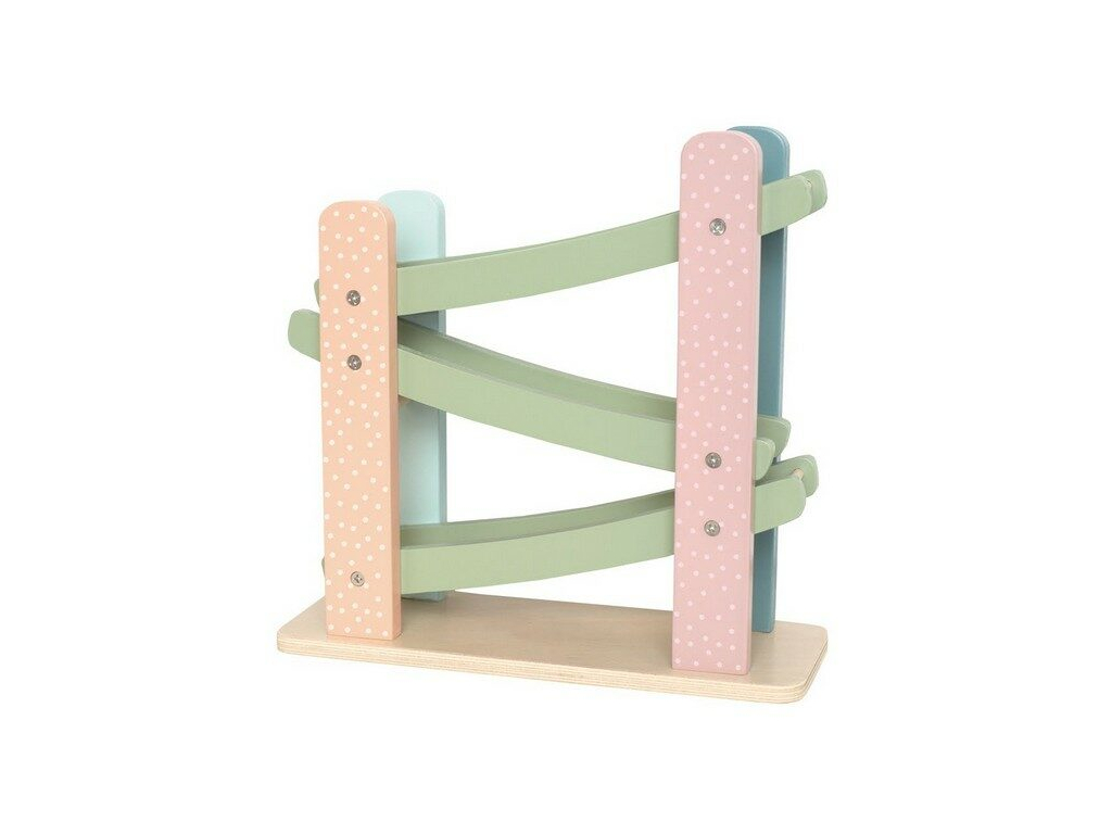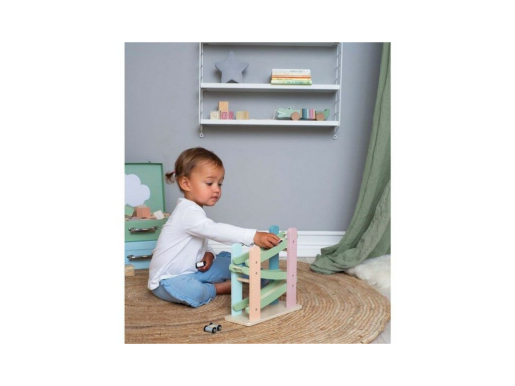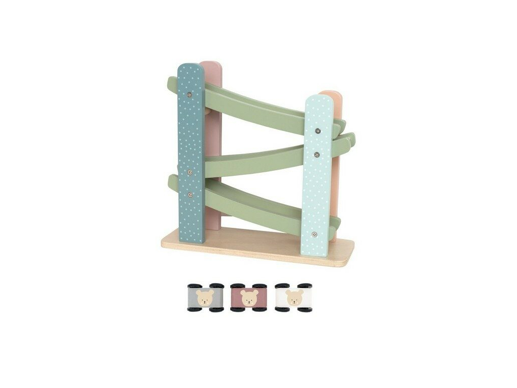 Klasická drevená závodná dráha ktorá nikdy neomrzí. Sada obsahuje 3 autíčka v pastelových jemných farbách, s ktorými zábava nekončí.