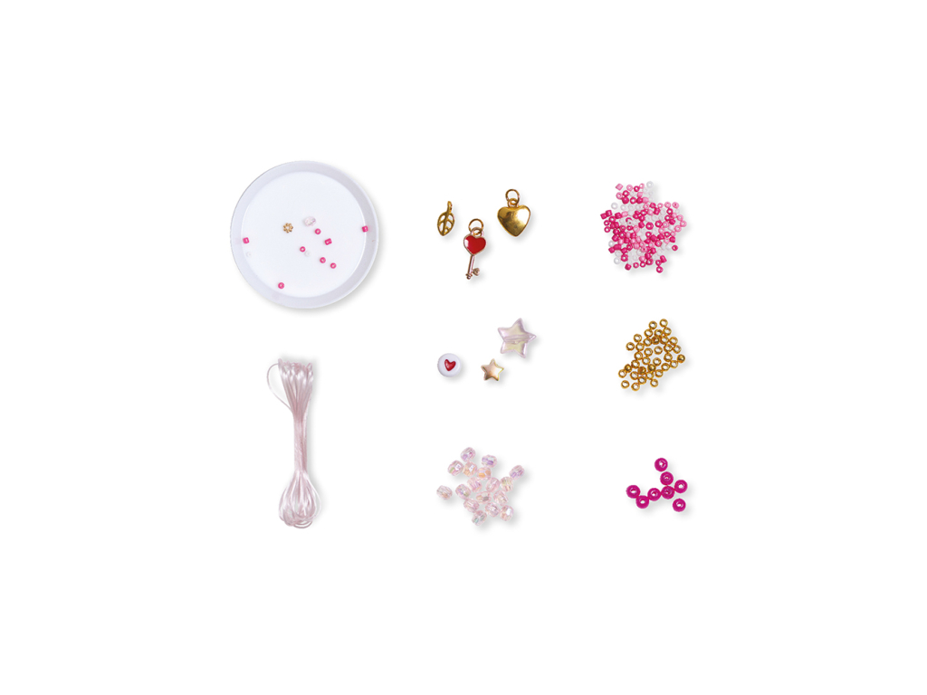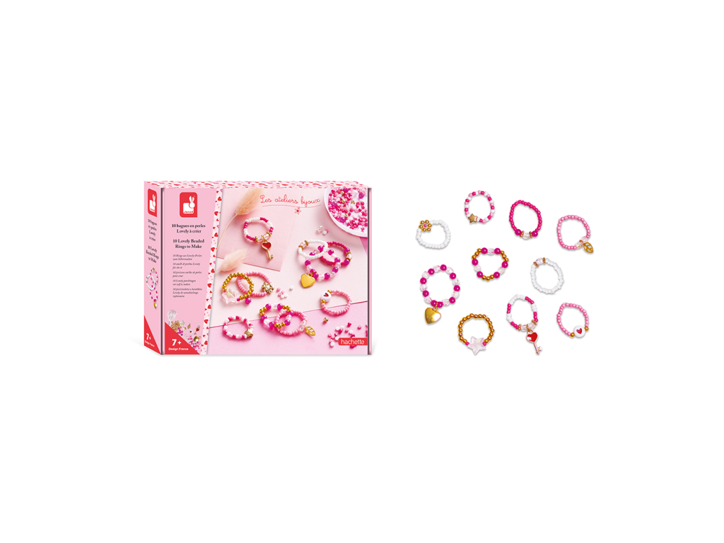 Vytvorte rozkošné šperky! S touto kreatívnou súpravou môžu deti vo veku 7 a viac rokov vyrobiť 8 korálkových krúžkov v rozkošnom štýle. Kolekcia nádherných prsteňov! Táto kreatívna súprava vám umožní vyrobiť 10 krásnych korálkových prsteňov: ružové, červené, srdiečka... Obsahuje 300 korálok, 40 zlatých korálok, 16 priehľadných fazetovaných korálok, 15 ružových dúhových korálikov, 6 dištančných korálikov a kopec iných doplnkov na kreatívne tvorenie.
