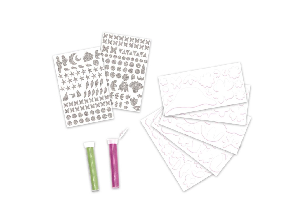 Vďaka tejto sade si deti môžu vychutnať pokojnú aktivitu v úplnom kľude, bez obrazoviek a naplno prejaviť svoju kreativitu! Kombinácia embosovaných penových nálepiek, pútavých farieb a trblietok dodáva ilustráciám očarujúci vzhľad.