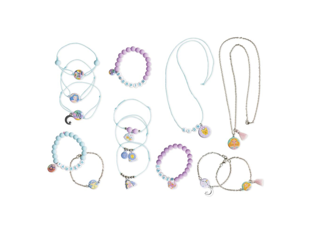 S touto remeselnou súpravou môžu deti vo veku od 7 rokov vyrobiť 14 šperkov s motívom astrologických znamení a buď si ich nechať pre seba, alebo ich ponúknuť svojim priateľom. Zahrnuté je každé znamenie zverokruhu.