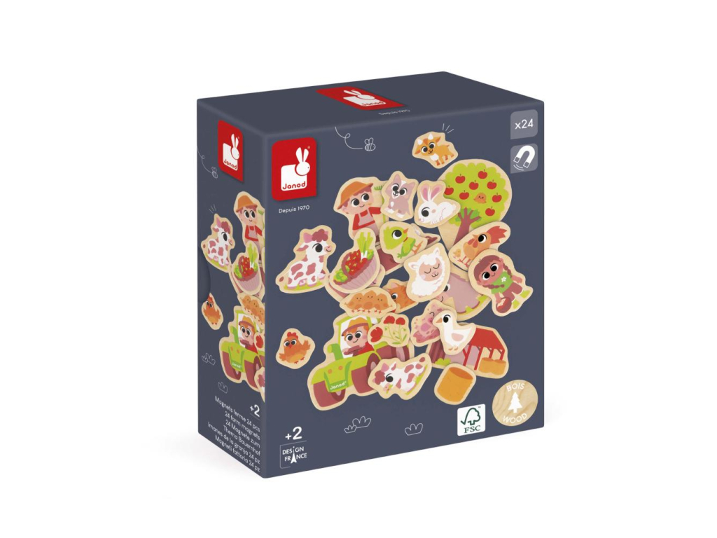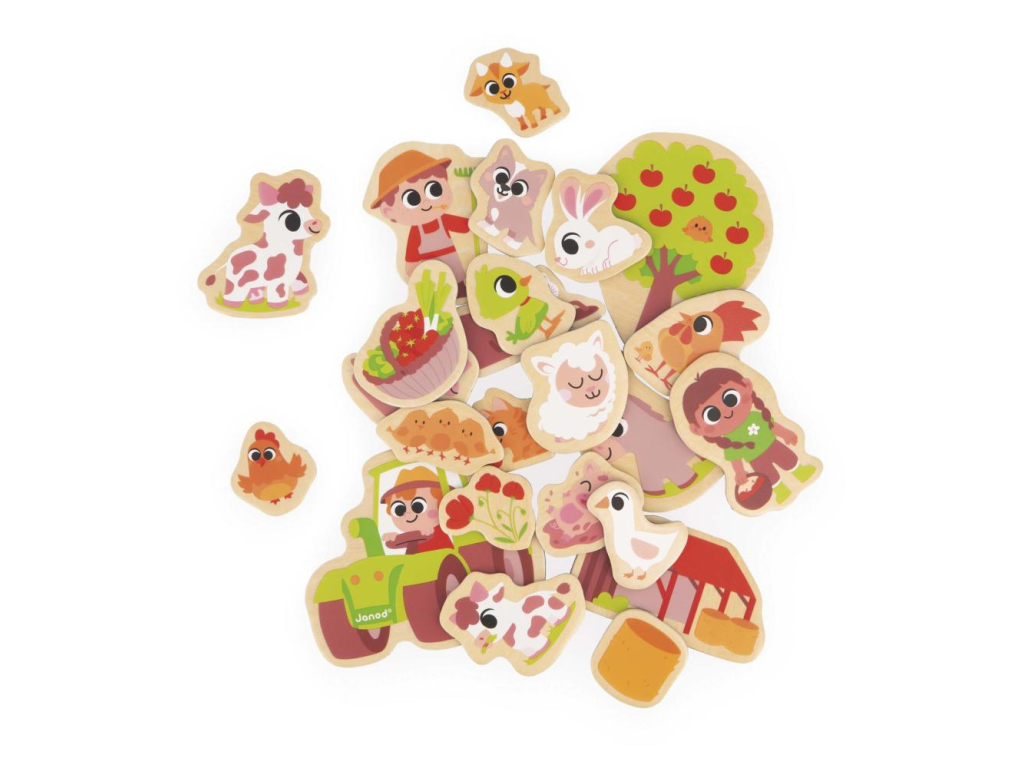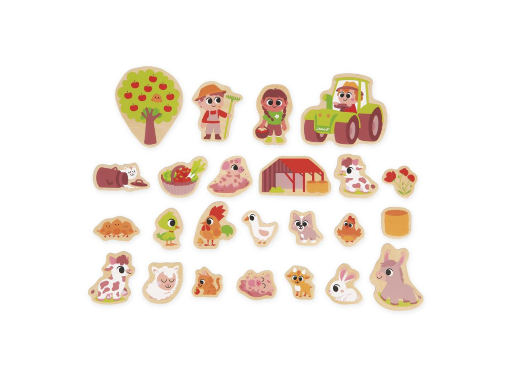 Janod Drevené magnetky pre deti Farma 24 ks