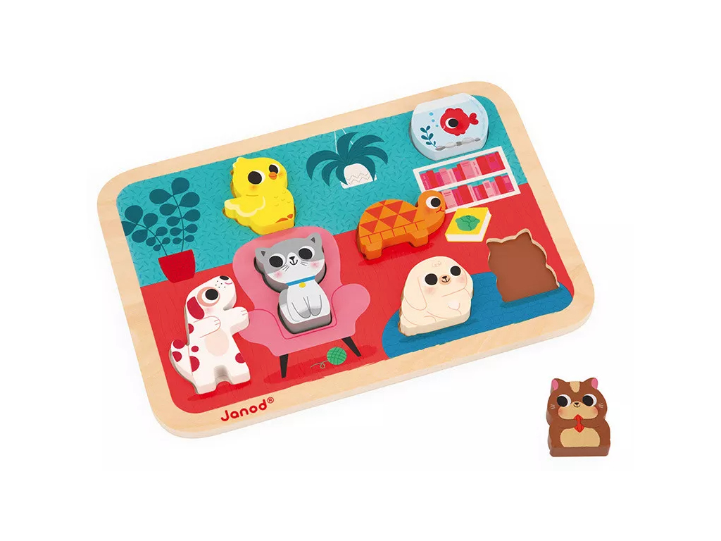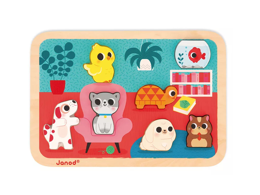 Janod Drevené vkladacie puzzle pre najmenších Domáci miláčikovia Chunky