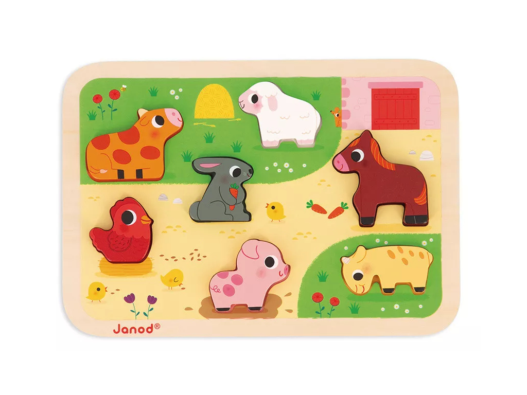Janod Drevené vkladacie puzzle pre najmenších Farma Chunky