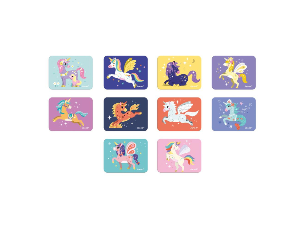 Táto magnetická hračka obsahuje 44 magnetov a 10 kariet. Cieľom je vytvoriť krásnych jednorožcov. Každý má svoju osobnosť a prostredie. Jedným z príkladov je, že morský jednorožec sa môže pochváliť dlhou plutvou podobnou rybe, ktorá mu pomáha pohybovať sa vo vode.