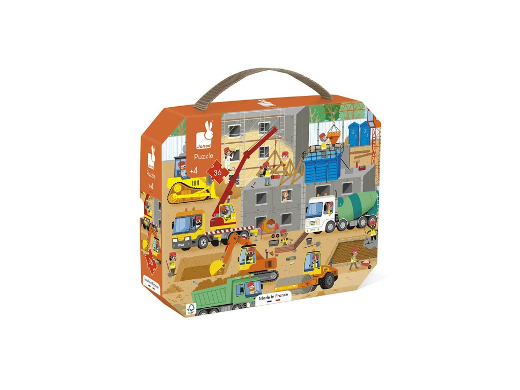 Janod Puzzle Na stavbe v kufríku 36 ks