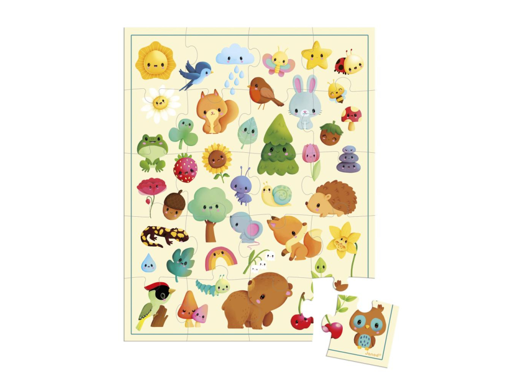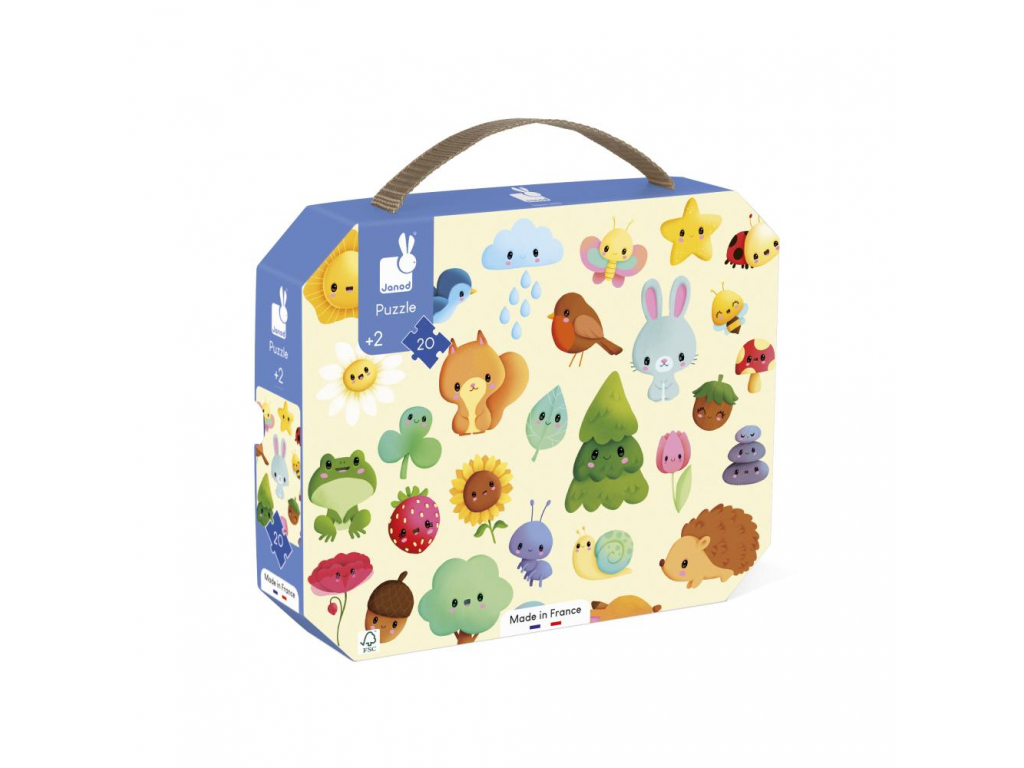20-dielne puzzle je vyrobené vo Francúzsku z kartónu s certifikátom FSC™ a atramentov na rastlinnej báze.