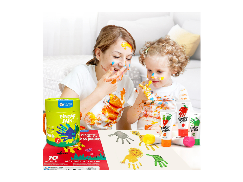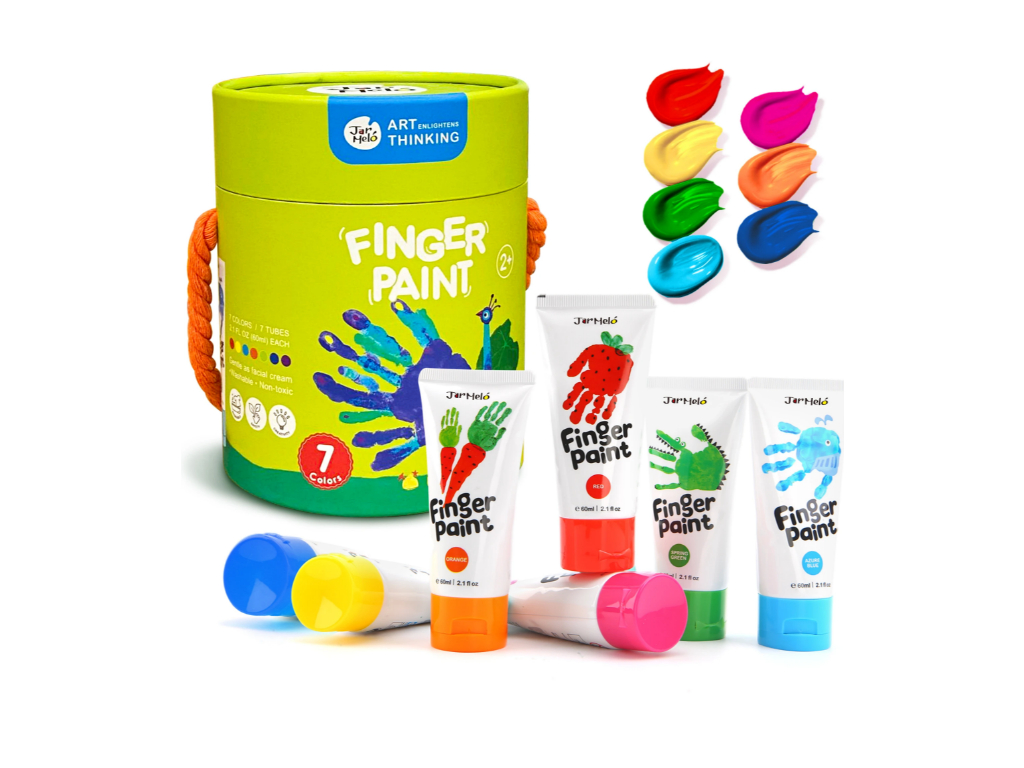 Jarmelo prstové farby ponúkajú ideálny štart pre malé ruky a veľké nápady. 7 farebných tubiek, ktoré podporujú jemnú motoriku a rozvíjajú predstavivosť. Radosť z tvorenia bez starostí – farby sa ľahko umývajú a sú netoxické.