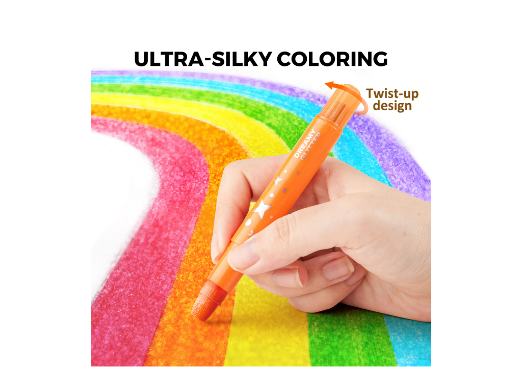 ✨Kreslite, tvorte, zabávajte sa! S voskovkami, ktoré milujú rodičia aj deti :) Rozžiarte svet svojho dieťatka farbami! Naše jemné umývateľné voskovky trblietavé v praktickom balení 12 kusov prinesú nekonečné možnosti kreatívneho vyžitia – na papieri, ale aj na tvári či tele. Bez tlačenia, bez špiny, iba čistá radosť z tvorenia! A bonus navyše - ✨TRBLIETKY✨