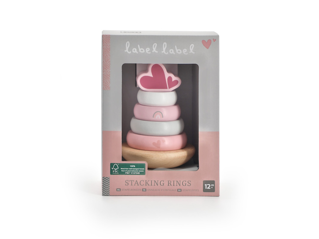 Balančné stohovacie krúžky od belgickej značky Label Label sú vyrobené z vysokokvalitného bukového dreva s certifikátom FSC v krásnych farebných odtieňoch vytvorených pomocou farby na vodnej báze, ktorá je vhodná i pre malé deti.