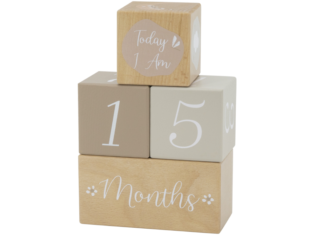 Label Label Míľnikové kocky – Nougat sú elegantné drevené kocky v neutrálnych zemitých tónoch, ideálne na zaznamenávanie dôležitých chvíľ vášho bábätka. Pomocou kociek jednoducho vytvoríte štýlové fotografie s vekom dieťaťa – v dňoch, týždňoch, mesiacoch či rokoch. Nadčasový dizajn vhodný pre dievčatko aj chlapčeka.
