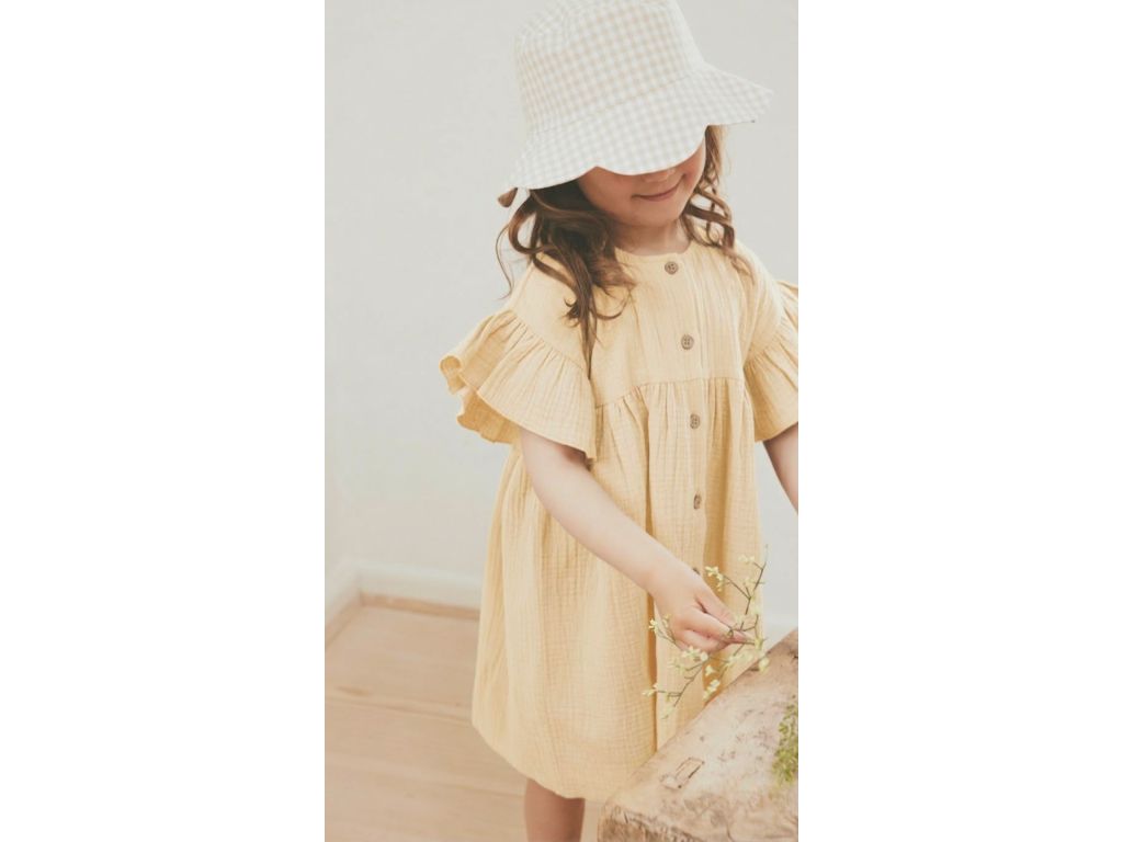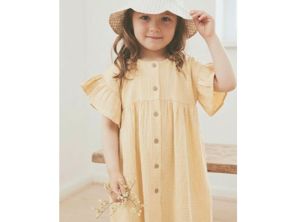 ✨ Nežné mušelínové šaty dánskej značky Huttelihut sú vyrobené zo 100% organickej bavlny. Sú ľahké, priedušné, mušelínové a jemné k citlivej detskej pokožke a ideálne na teplé dni. Svieža vanilkovo-žltá farba rozžiari každý deň☀️