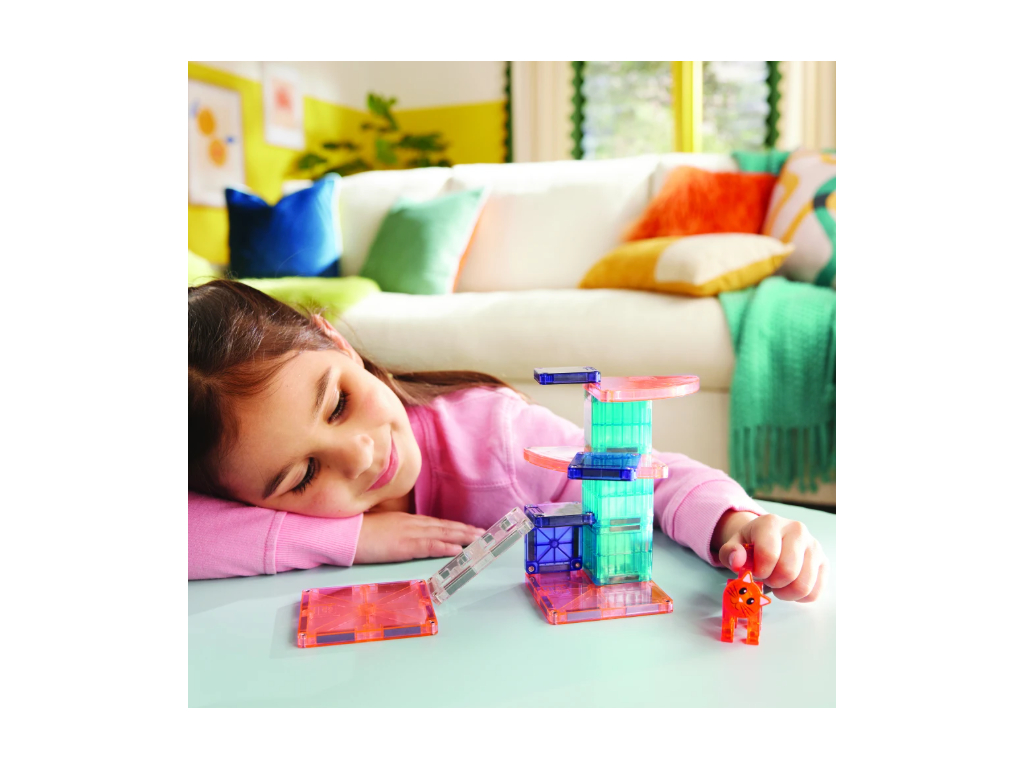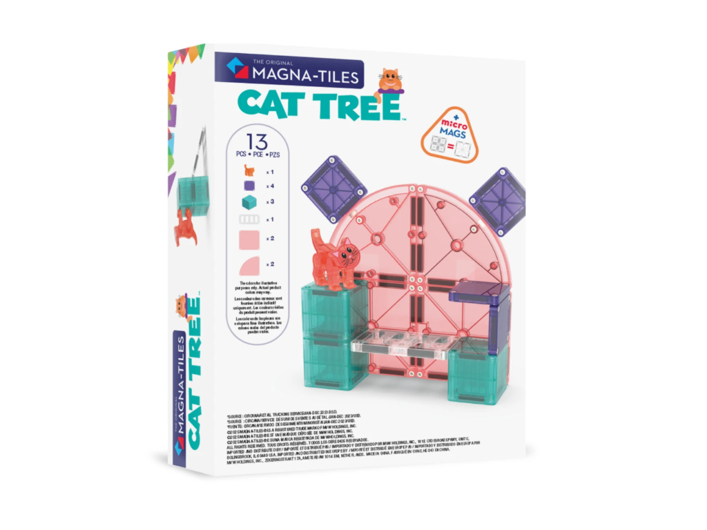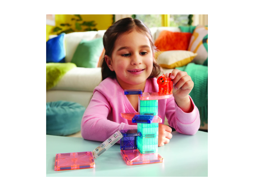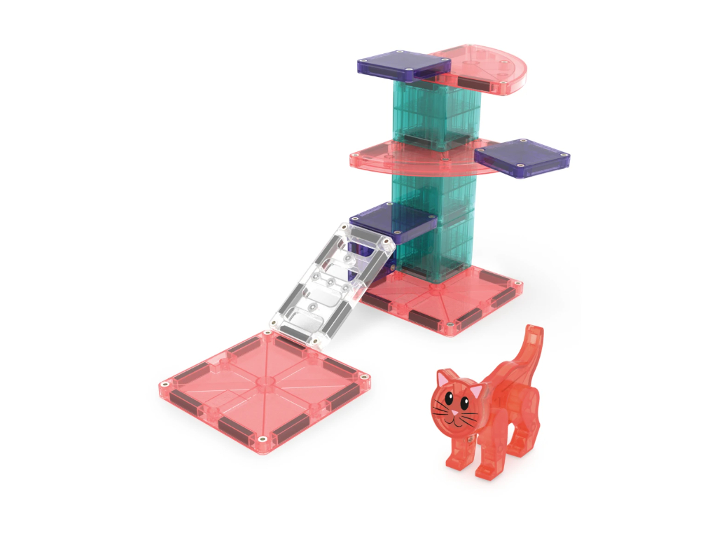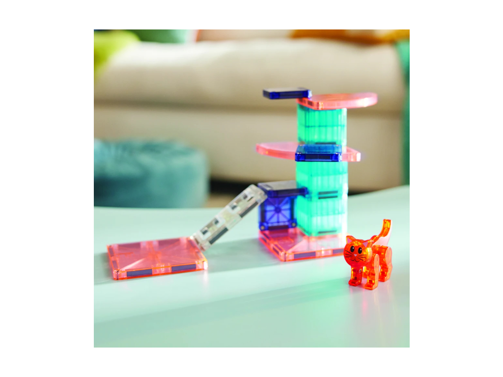 Magna-Tiles Cat Tree je roztomilý magnetický set, ktorý zavedie deti do sveta mačiek a ich hravých dobrodružstiev. Stavebnica podporuje fantáziu, kreativitu a jemnú motoriku – ideálna na tvorivé stavanie a vymýšľanie vlastných príbehov. Kompatibilná so všetkými Magna-Tiles dielmi!