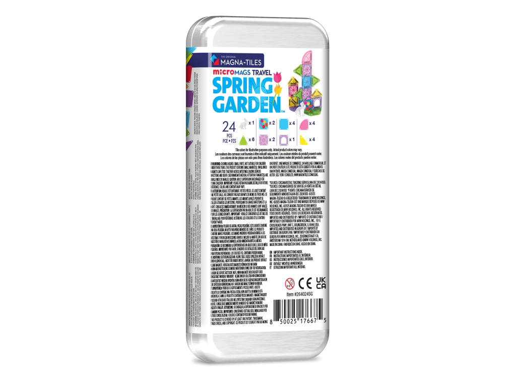 Cestovná magnetická stavebnica MAGNA-TILES microMAGS Spring Garden Travel Set prináša radosť, kreativitu a zábavu v kompaktnom balení. Ozdobené kvetinové dieliky, pastelové štvrťkruhové tvary a roztomilá figurka zajka inšpirujú deti k vytváraniu jasných, hravých jarných svetov, či už doma, na výlete alebo na cestách.Stavebnica podporuje jemnú motoriku, koordináciu ruka–oko, priestorové vnímanie a kreativitu. Deti sa učia tvoriť príbehy a rozvíjať fantáziu bez návodu, slobodne a vlastným tempom.
