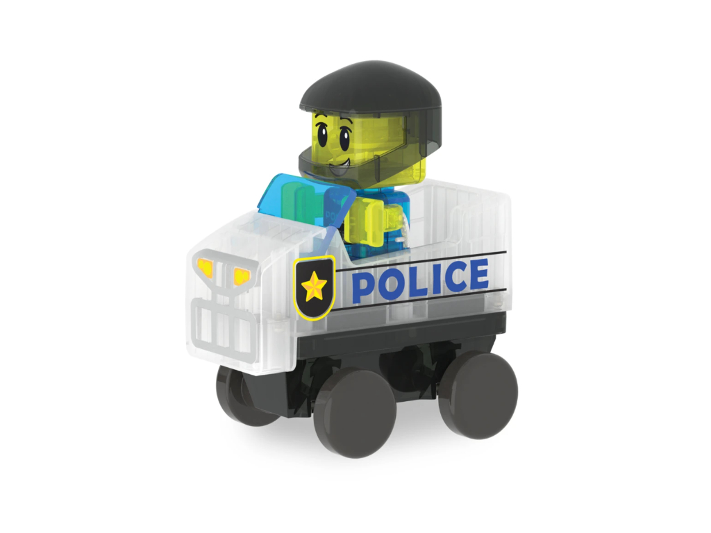 Tematická magnetická stavebnica s policajnými motívmi, ktorá obsahuje 20 dielov vrátane figúrky, policajného auta a špeciálne potlačených panelov. Silné magnety umožňujú jednoduché spájanie dielov z rôznych uhlov, takže deti môžu stavať vozidlá, budovy či celé scény. Podporuje kreativitu, priestorové myslenie a tímovú hru.