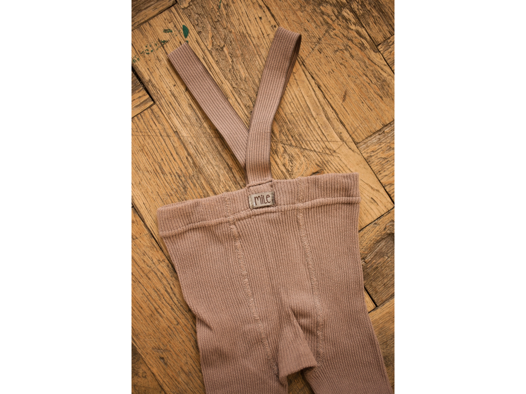 Jemné béžovohnedé retro pančuchy MILE s elastickými trakmi, vhodné pre bábätká, lezúňov a detičky do 3 rokov. Vyrobené z česanej bavlny (85%) s jemným polyamidom (15%), vďaka ktorému držia tvar a neprederavia sa. Je vpletený medzi dve bavlnky, aby nedochádzalo ku kontaktu s detskou pokožkou. Preto sú vhodné aj pre ekzematickú pokožku.