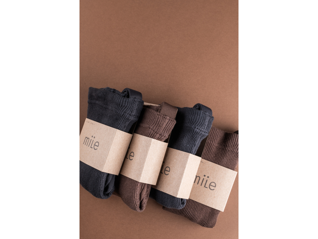 Retro orieškové pančuchy MILE s elastickými trakmi, vhodné pre bábätka, lezúňov a detičky do 3 rokov. Vyrobené z česanej bavlny (85%) s jemným polyamidom (15%), vďaka ktorému držia tvar a neprederavia sa. Je vpletený medzi dve bavlnky, aby nedochádzalo ku kontaktu s detskou pokožkou. Preto sú vhodné aj pre ekzematickú pokožku.