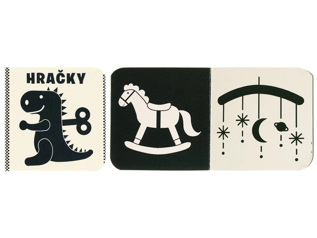 Objavte v tejto praktickej knižničke vysoko kontrastné čiernobiele leporelá. Každé leporelo obsahuje výrazné obrázky čísel, zvierat, tvarov či predmetov, ktoré najmenším deťom napomáhajú pri prirodzenom vývoji a ranom učení. Zabavte sa s deťmi pri prezeraní a objavovaní okolitého sveta! Bábätká si otáčaním a manipuláciou rozvíjajú motoriku a koordináciu pohybu prštekov.