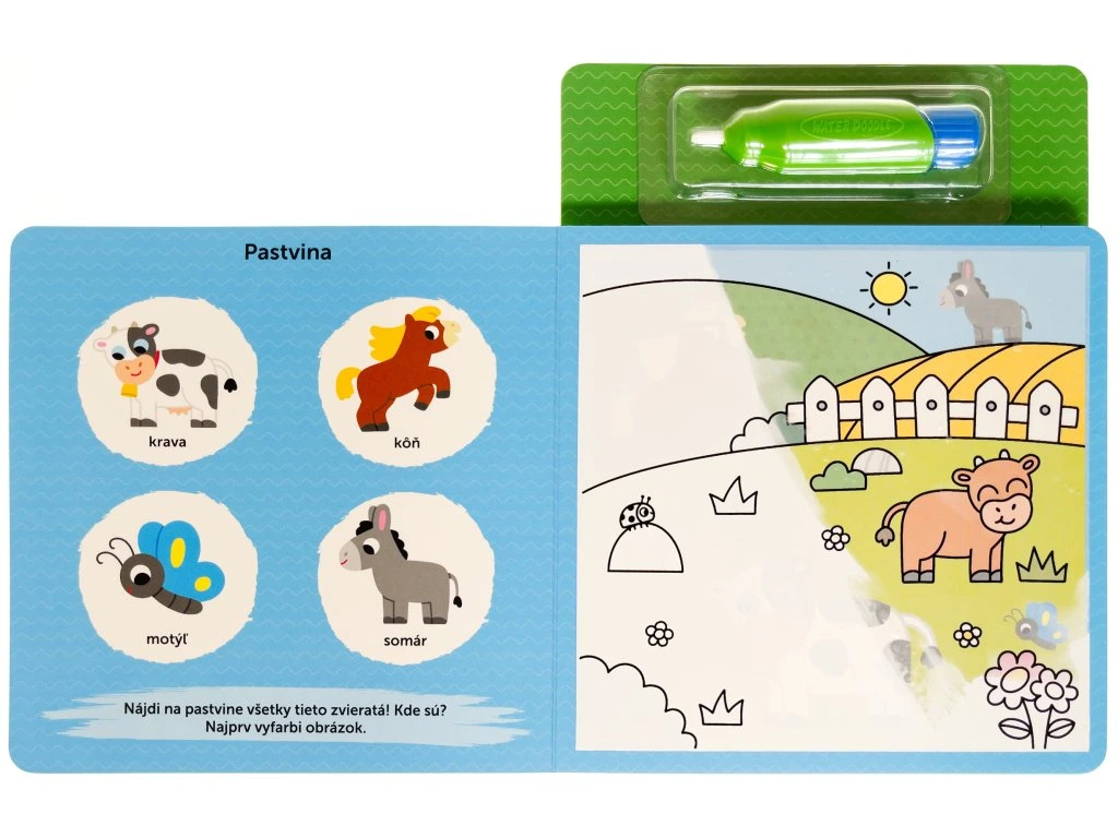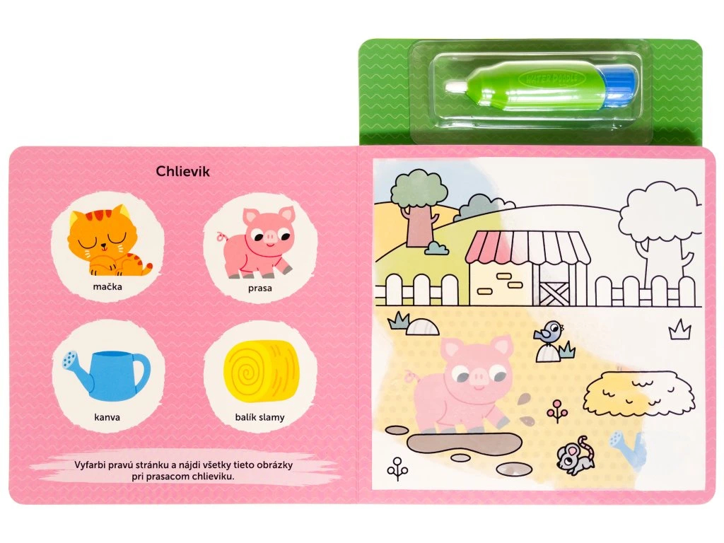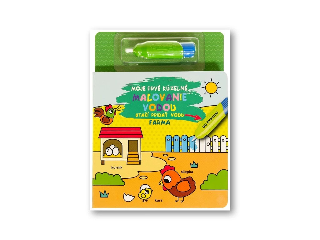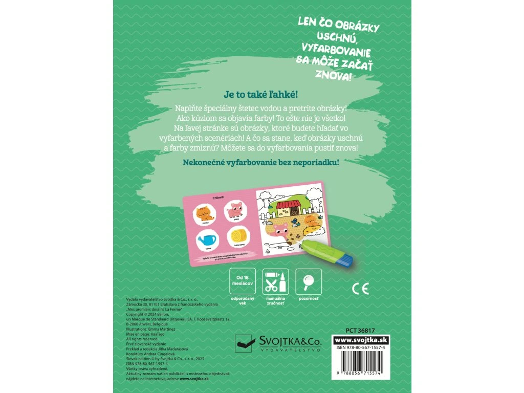 🎨 Kúzelné maľovanie bez neporiadku – radosť pre najmenších! 🚜 Otvorte dvere farme plnej farieb, ktorá ožíva ako kúzlom – stačí špeciálny štetec naplniť len vodou a pretrieť stránky! Na obrázkoch sa objavia nádherné farby a veselá farma plná zvieratiek – bez farieb, bez špiny a úplne bezpečne pre malé ruky. Keď voda vyschne, farby sa zázračne vytratia a zábava môže začať odznova!
